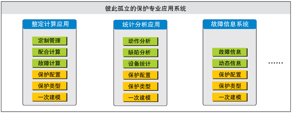 圖2:眾多保護(hù)專(zhuān)業(yè)應(yīng)用系統(tǒng)的數(shù)據(jù)重復(fù)錄入示圖